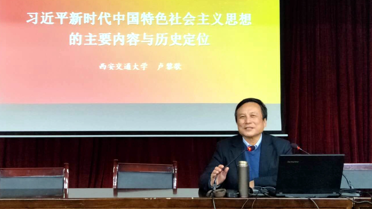 10月18日晚,西安交通大学马克思主义学院博士生导师、陕西省教学名师、国务院政府特殊津贴专家卢黎歌教授,以“习近平新时代中国特色社会主义思想的历史地位和主要内容”为题为我校马克思主义学院全体师生作学术报告。