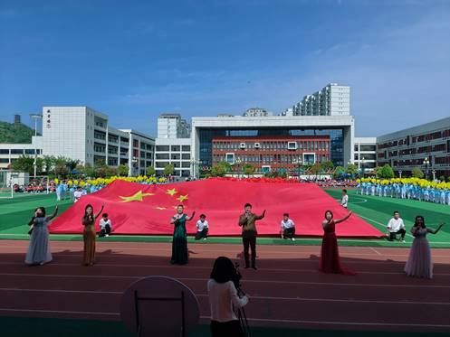 旗之所指,心之所向。本次升旗仪式由我校国旗护卫队负责,伴随着嘹亮的国歌声,五星红旗冉冉升起,运动会正式拉开帷幕。为了祝贺附属小学运动会盛大开幕,我校电信学院240余名师生为其表演了大型团体操《奋进商院 礼献祖国》,给小小的少年们深深地种下了爱国的种子。
